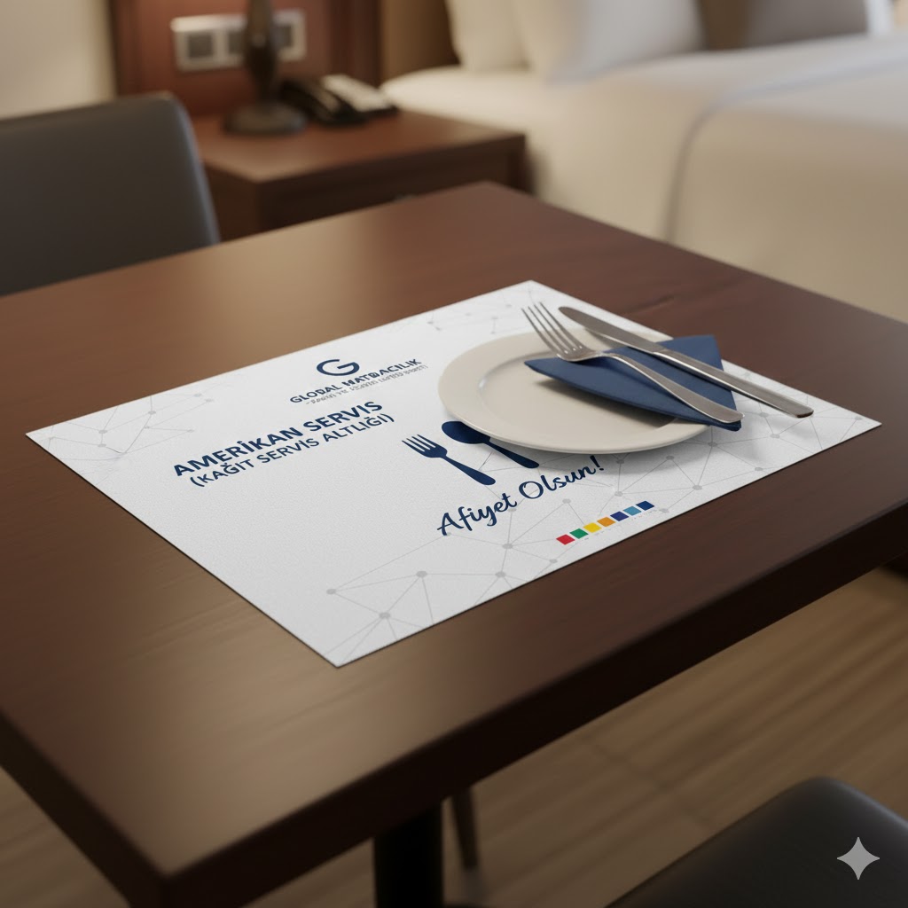Amerikan Servis (Kağıt Servis Altlığı) Restoran ve kafeler için hem hijyenik hem de reklam alanı sunan Amerikan servisler, müşteri deneyimini artırır. Firmanıza özel baskılı servis altlıkları ile hem marka bilinirliğinizi artırabilir hem de şık bir sunum sağlayabilirsiniz. ✔ Hijyenik kullanım✔ Reklam alanı avantajı✔ Özel tasarım seçenekleri 📞 Restoranınıza özel tasarımlar için teklif alın.