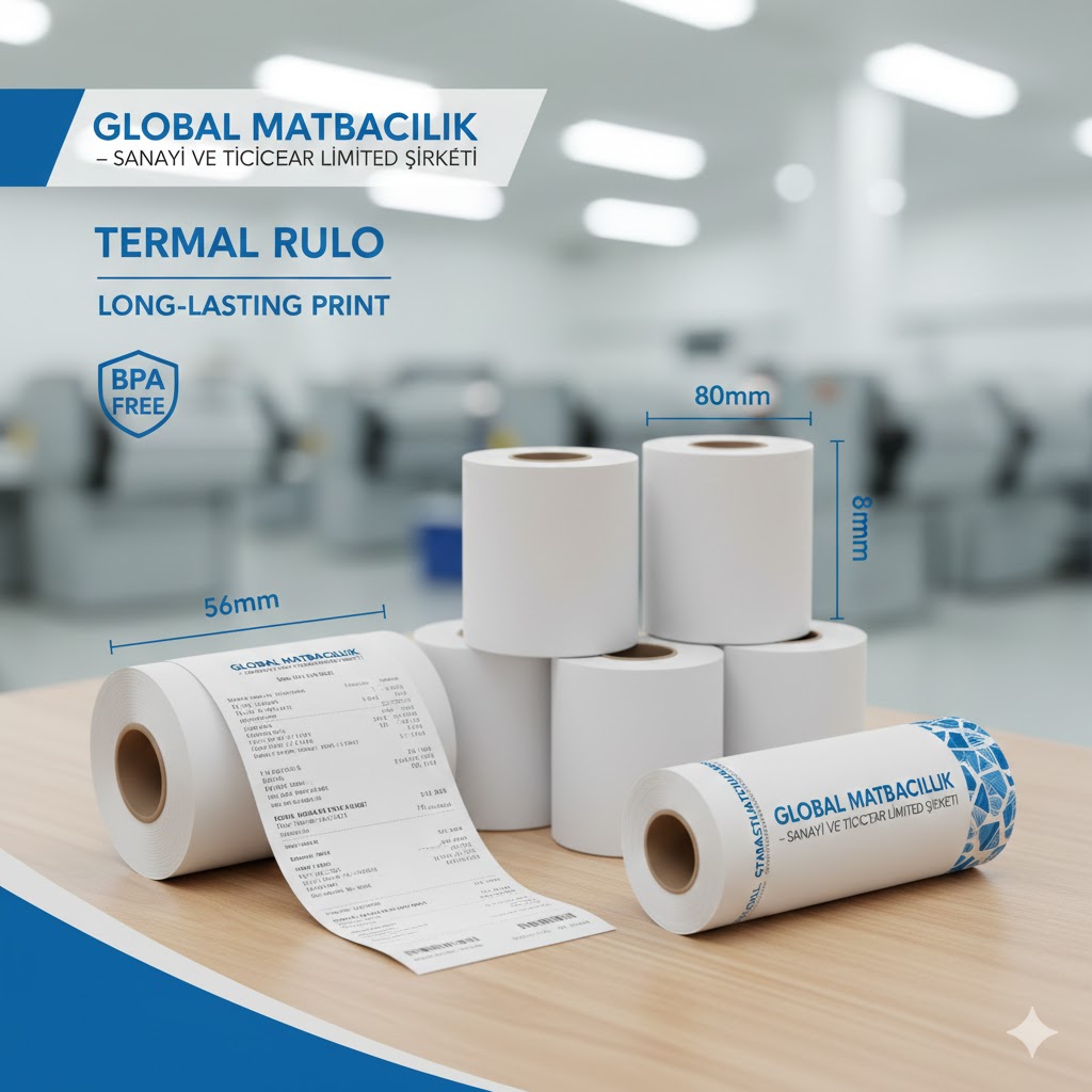 Yazar Kasa ve POS Ruloları (Termal Rulolar) Yazar kasa ve POS cihazlarında kullanılan termal rulolar, işletmelerin günlük operasyonlarında kritik bir rol oynar. Kaliteli termal rulolar, net baskı ve uzun ömürlü kullanım sağlayarak iş süreçlerinizi sorunsuz hale getirir. Global Matbaacılık olarak farklı ölçü ve gramaj seçenekleriyle, yüksek kaliteli ve dayanıklı termal rulolar sunuyoruz. Tüm yazar kasa […]